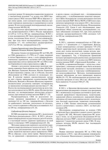34. Belter L., Taylor J.L., Jorgensen E., Glascock J., Whitmire S.M., Tingey J.J., et al. Newborn screening and birth prevalence for spinal muscular atrophy in the US. JAMA Pediatr. 2024; 178(9): 946-9. DOI: 10.1001/jamapediatrics.2024.1911