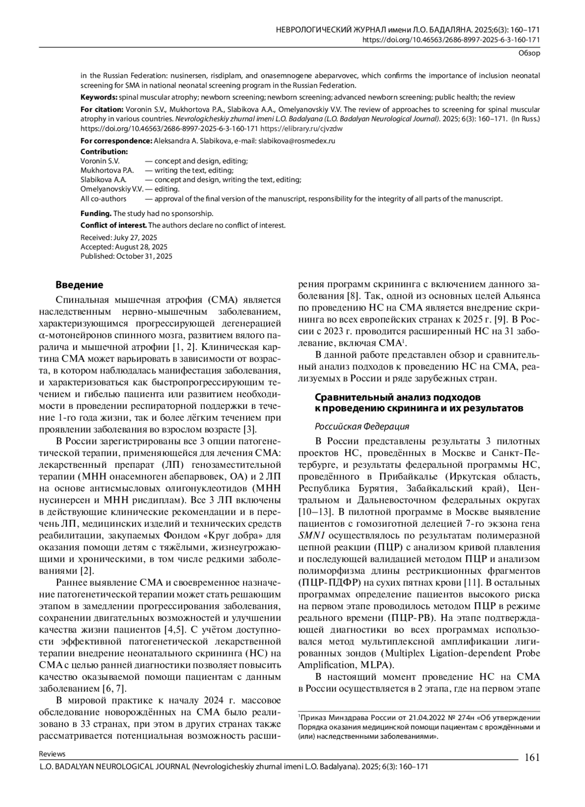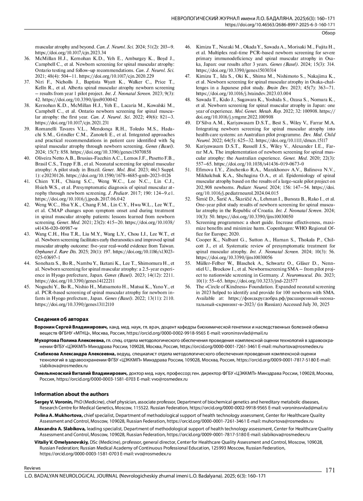11. Mikhalchuk K., Shchagina O., Chukhrova A., Zabnenkova V., Chausova P., Ryadninskaya N., et al. Pilot program of newborn screening for 5q spinal muscular atrophy in the Russian Federation.Int. J. Neonatal Screen. 2023; 9(2): 29. DOI: 10.3390/ijns9020029