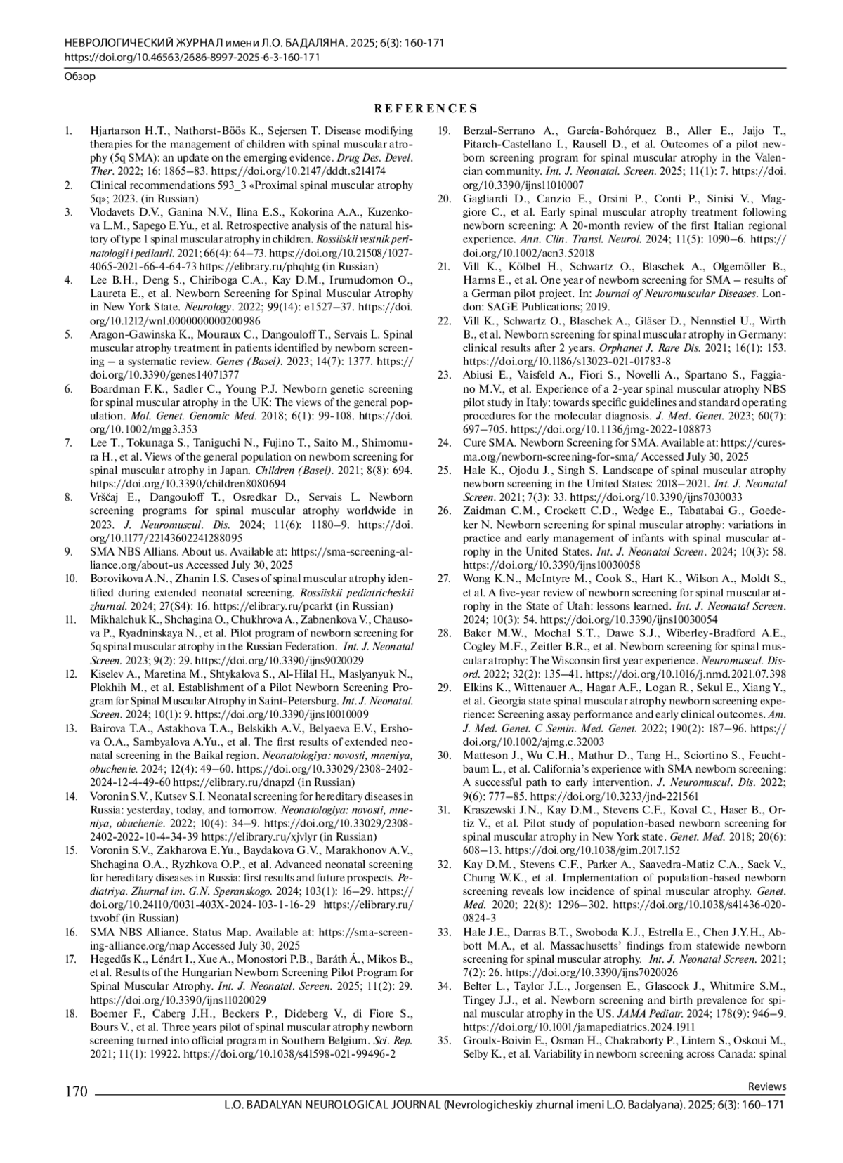 10. Боровикова А.Н., Жанин И.С. Случаи спинальной мышечной атрофии, выявленные в ходе расширенного неонатального скрининга. Российский педиатрический журнал. 2024; 27(S4): 16.