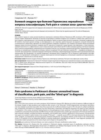 15. Stoyanova-Piroth G., Milanov I., Stambolieva K. Association between pain threshold and manifested pain assessed using a PD-specific pain scale in Parkinson’s disease. Front. Neurol. 2024; 15: 1420696. DOI: 10.3389/fneur.2024.1420696