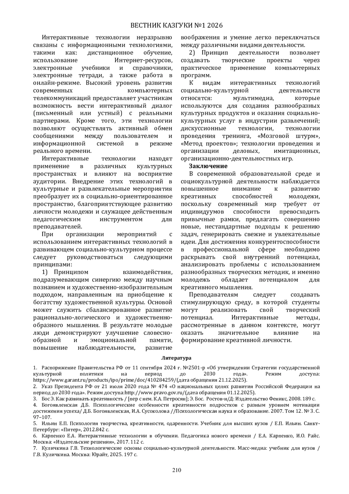 1. Распоряжение Правительства РФ от 11 сентября 2024 г. №2501-р “Об утверждении Стратегии государственной культурной политики на период до 2030 года”. Режим доступа: https://www.garant.ru/products/ipo/prime/doc/410284259/(дата обращения 21.12.2025).