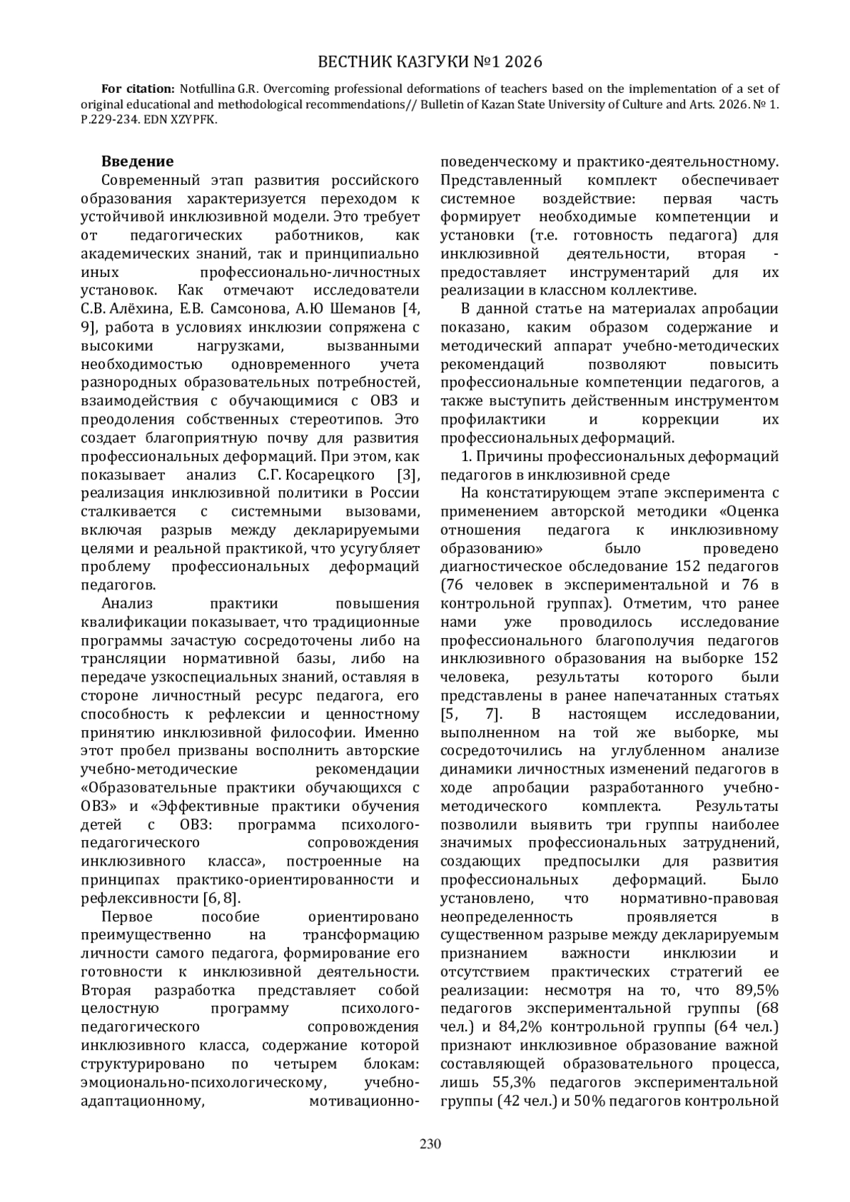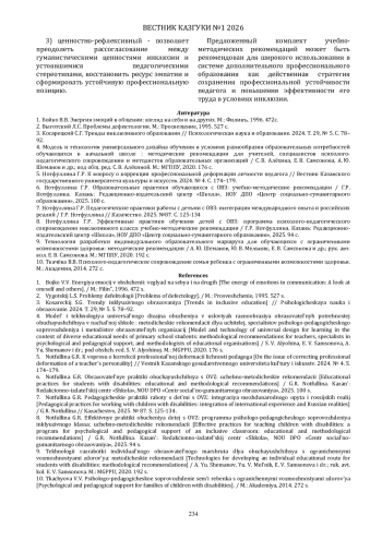 7. Нотфуллина Г.Р. Педагогические практики работы с детьми с ОВЗ: интеграция международного опыта и российских реалий / Г.Р. Нотфуллина // Казачество. 2025. №87. С. 125-134. EDN: EUIAKU