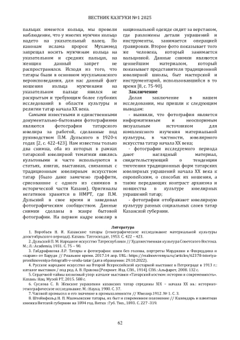 6. Суслова С. В. Женские украшения казанских татар середины XIX - начала XX вв.: историко-этнографическое исследование. М.: Наука, 1980. С. 37. EDN: SYWQAT