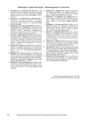 2. Клепиков Д.Н., Лопаткин Д.С., Гринев Н. Н. Прогноз технологического развития химической промышленности. Москва: Российский химико-технологический университет им. Д.И. Менделеева. 2020. 104 с. EDN: OWFXJJ
