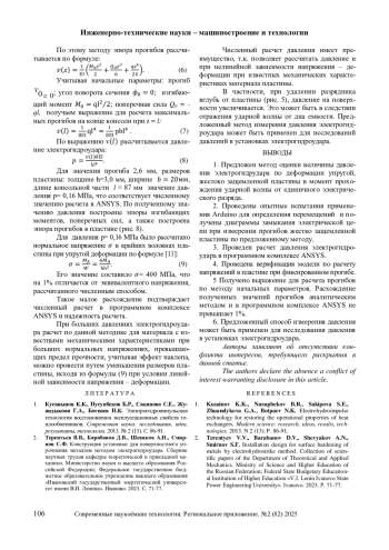1. Кусаиынов К.К., Нусупбеков Б.Р., Сакипова С.Е., Жу-андыкова Г.А., Ботпаев Н.К Электрогидроимпульсная технология восстановления эксплуатационных свойств теплообменников. Современная наука: исследования, идеи, результаты, технологии. 2013. N° 2 (13). С. 86-91.