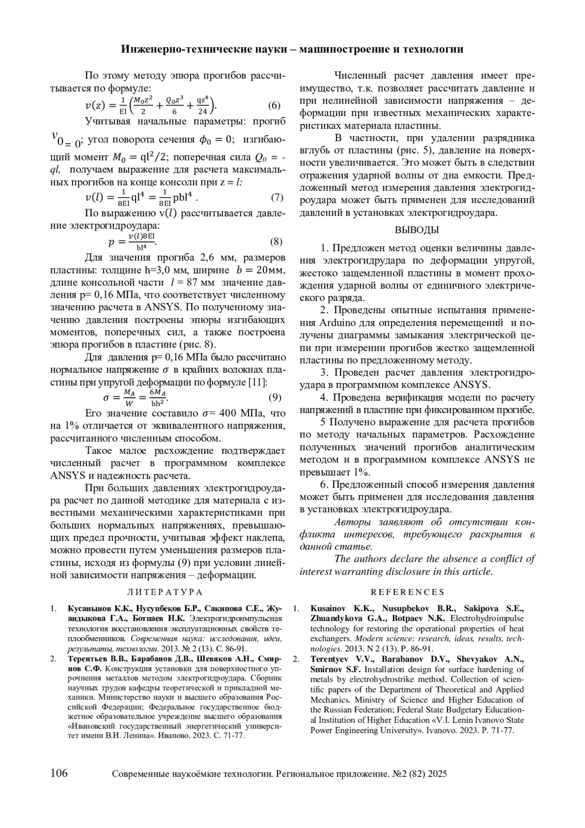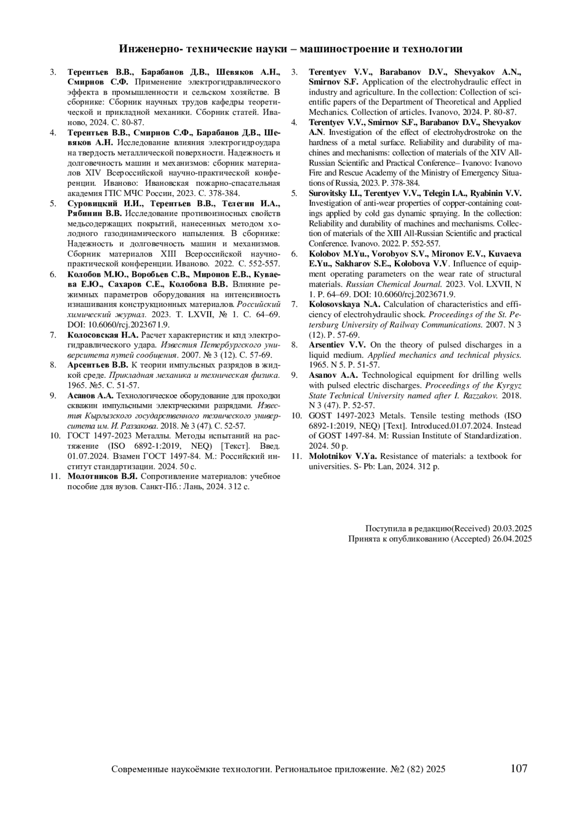 2. Терентьев В.В., Барабанов Д.В., Шевяков А.Н., Смирнов С.Ф. Конструкция установки для поверхностного упрочнения металлов методом электрогидроудара. Сборник научных трудов кафедры теоретической и прикладной механики. Министерство науки и высшего образования Российской Федерации; Федеральное государственное бюджетное образовательное учреждение высшего образования «Ивановский государственный энергетический университет имени В.И. Ленина». Иваново. 2023. С. 71-77.