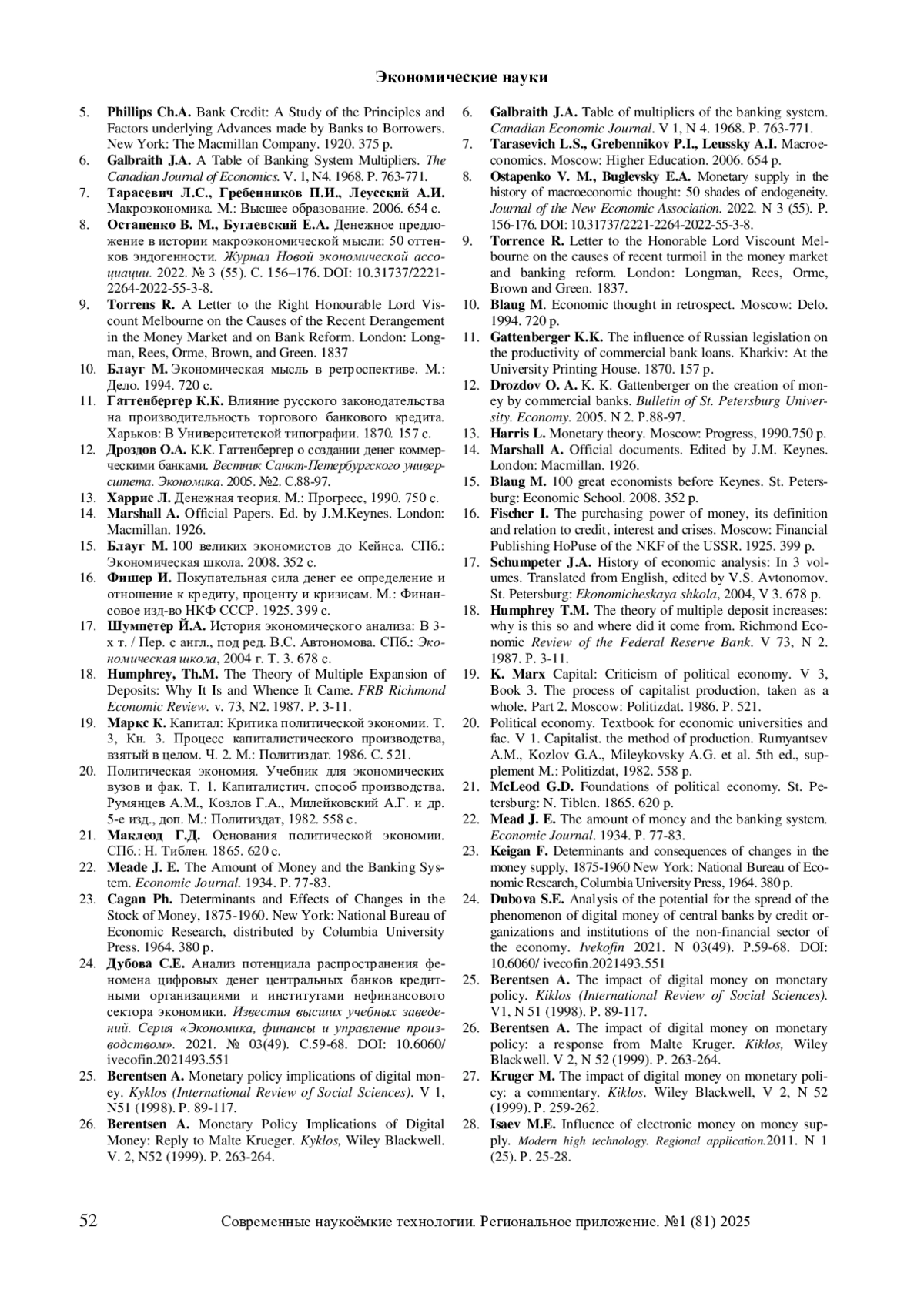 2. Главина С.Г., Яровая Т.А. Влияние цифровой валюты 2. центрального банка на финансовую стабильность. Известия высших учебных заведений. Серия «Экономика, финансы и управление производством». 2024. № 01(59). С.6-12. DOI: 10.6060/ivecofm.2024591.668 3.