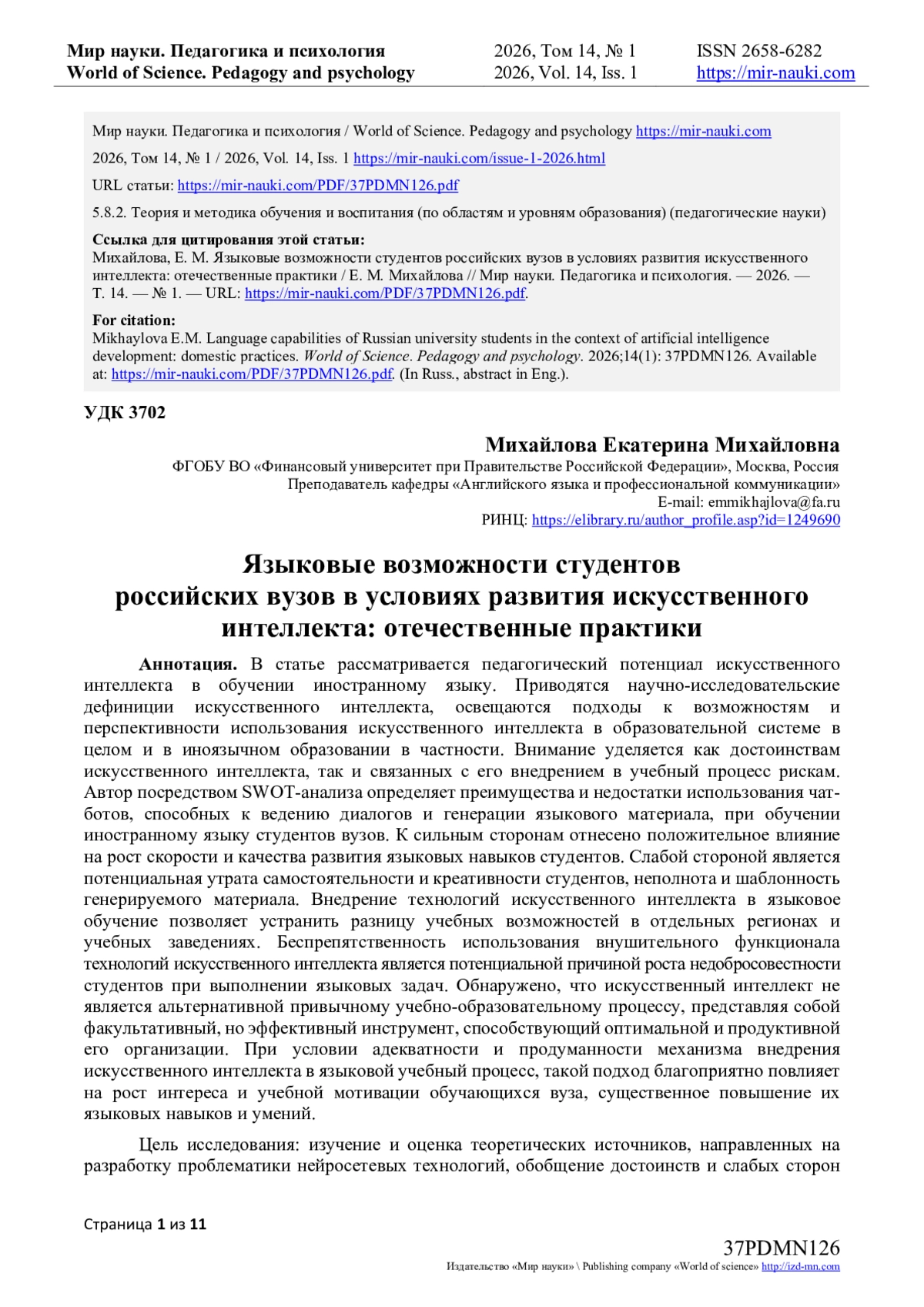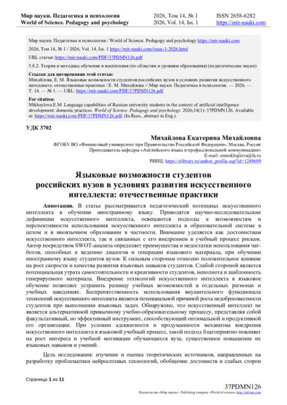 https://cyberleninka.ru/article/n/iskusstvennyy-intellekt-v-obrazovanii-analizperspektivy-i-riski-v-rf (дата обращения: 16.01.2026).