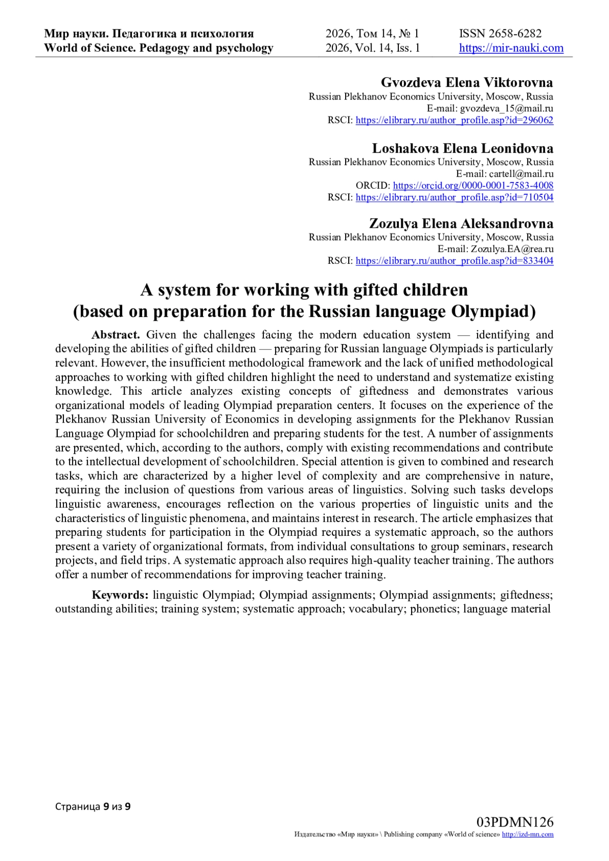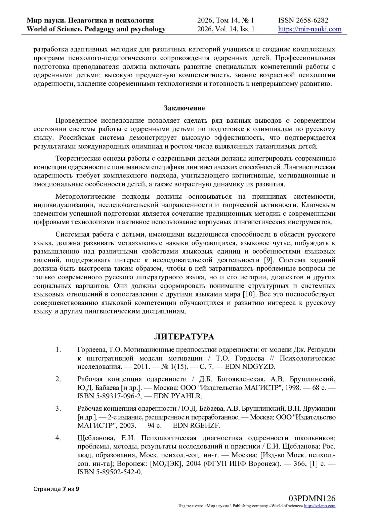 - ИЗДАТЕЛЬСТВО МИР НАУКИ