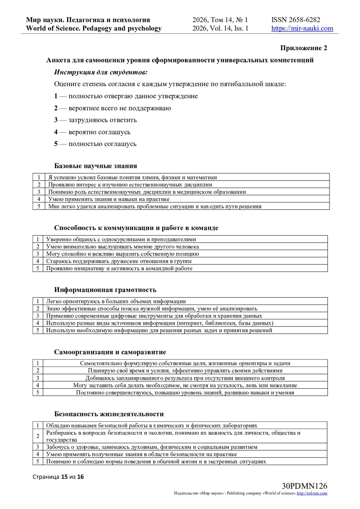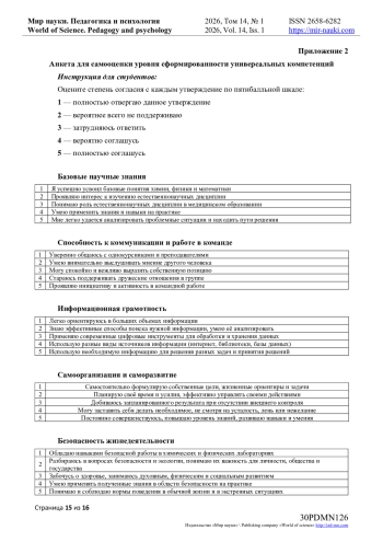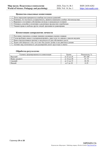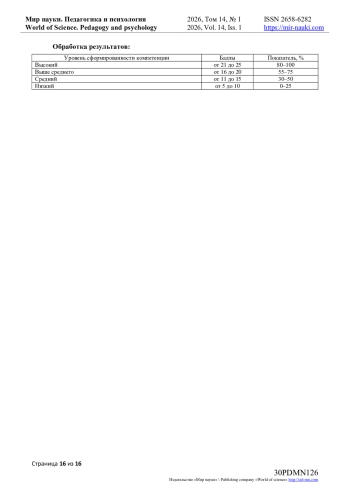 14. Козловских М.Е. Организационно-методическая модель формирование универсальных педагогических компетенций на базе IT-кластера технопарка / М.Е. Афанасьева / Современные проблемы науки и образования. — 2022. — № 5. URL: https://science-education.ru/ru/article/view?id=32151 (дата обращения: 20.01.2026). DOI: https://doi.org/10.17513/spno.32151.