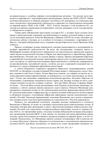 7. Басов, Ф. (2025). Добровольный вечный нейтралитет, или Готова ли Австрия вступить в НАТО. ТАСС, 29.07.2025.