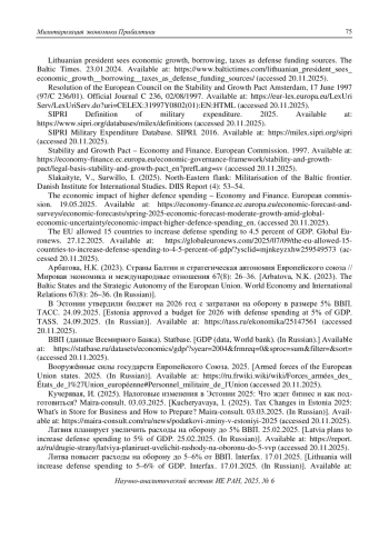 16. Арбатова, Н.К. (2023). Страны Балтии и стратегическая автономия Европейского союза // Мировая экономика и международные отношения 67(8): 26-36. EDN: ZMONAU