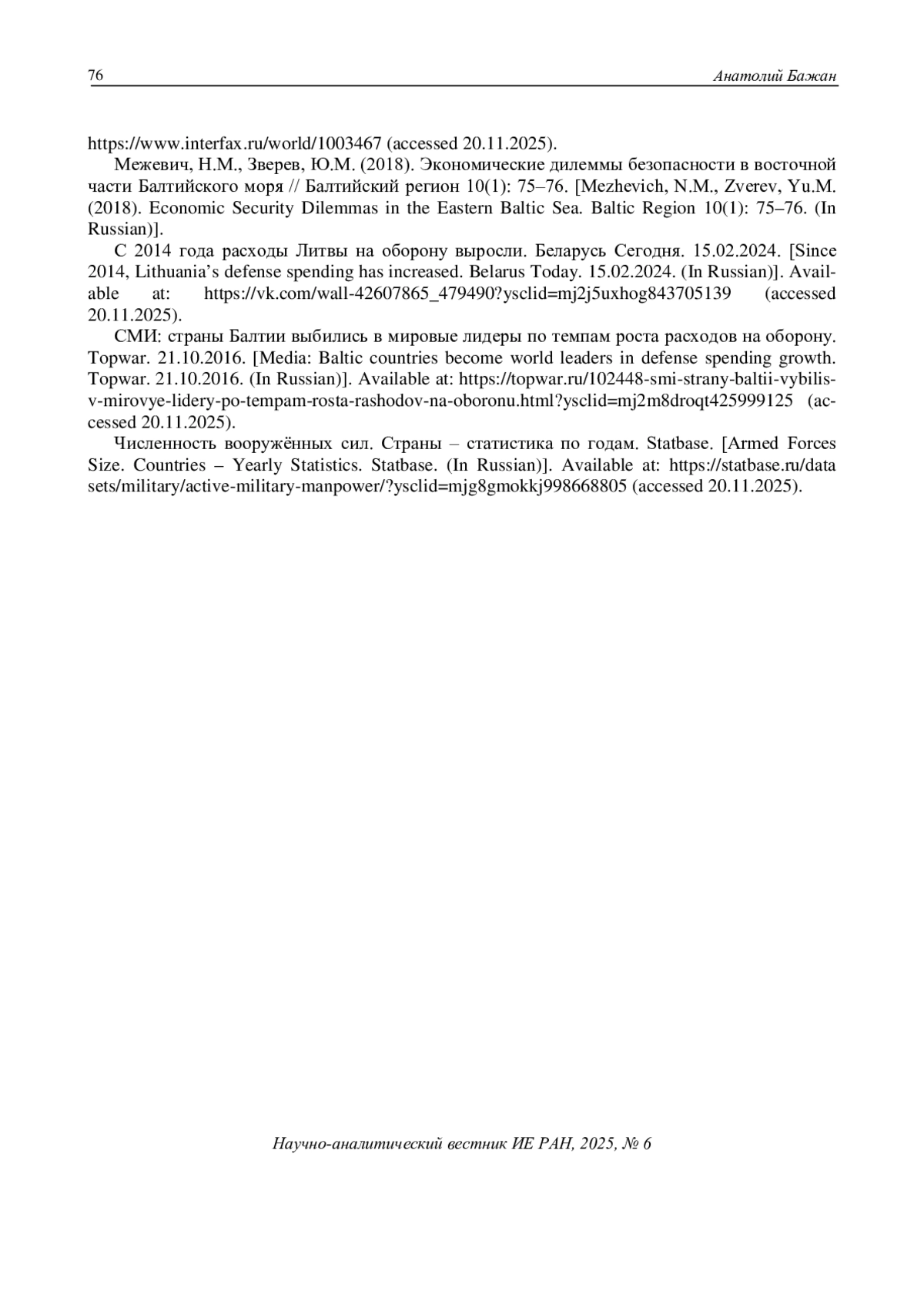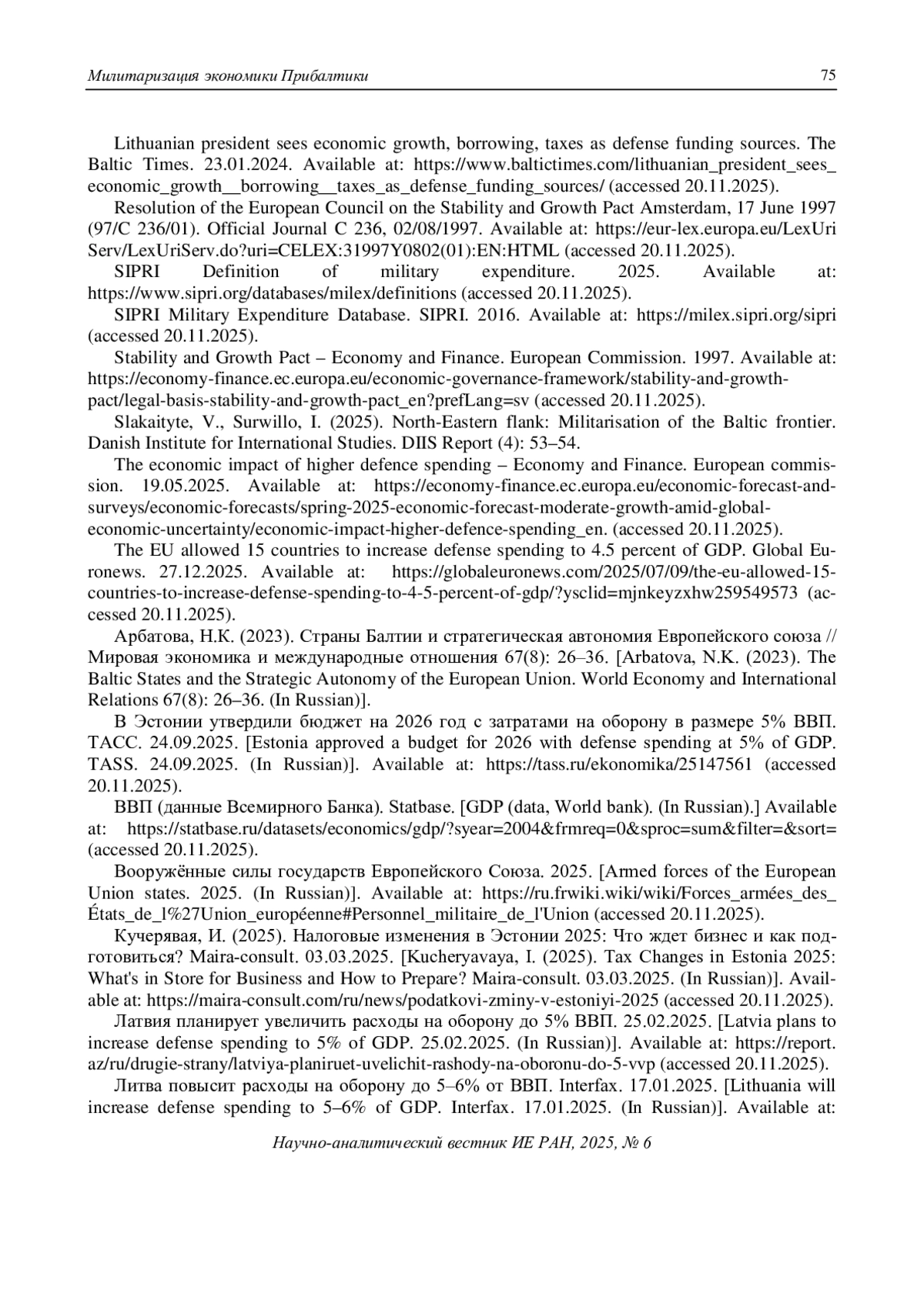 Media: Baltic countries become world leaders in defense spending growth. Topwar. 21.10.2016. (In Russian). Available at: https://topwar.ru/102448-smi-strany-baltii-vybilis-v-mirovye-lidery-po-tempam-rosta-rashodov-na-oboronu.html?ysclid=mj2m8droqt425999125 (accessed 20.11.2025).