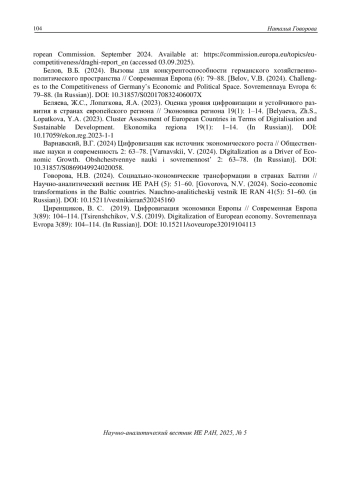 19. Циренщиков, В. С. (2019). Цифровизация экономики Европы // Современная Европа 3(89): 104-114. DOI: 10.15211/soveurope32019104113 EDN: TJAIOS