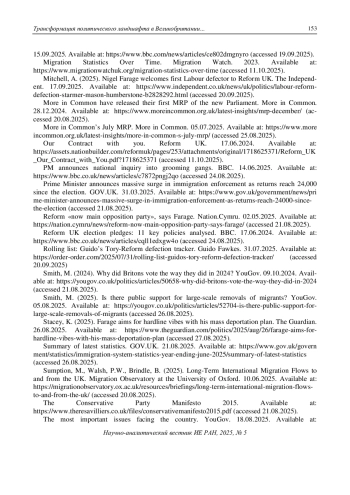 29. Mitchell, A. (2025). Nigel Farage welcomes first Labour defector to Reform UK. The Independent. 17.09.2025. Available at: https://www.independent.co.uk/news/uk/politics/labour-reform-defection-starmer-mason-humberstone-b2828292.html (accessed 20.09.2025).