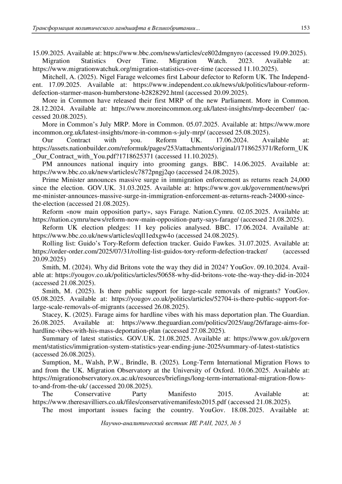 17. Freedman, S. (2025). How the Conservatives became irrelevant. The Observer. 22.05.2025. Available at: https://observer.co.uk/news/politics/article/how-the-conservatives-became-irrelevant (accessed 25.08.2025).