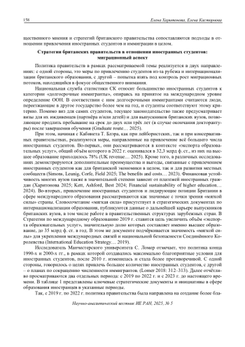 44. Харитонова, Е.М. (2025). Британское высшее образование для иностранных студентов: новые вызовы // Современная Европа (1): 150-163. DOI: 10.31857/S0201708325010127 EDN: MZUBZZ