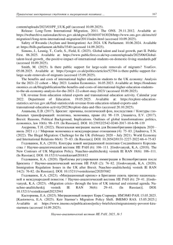42. Годованюк, К.А. (2023). “Миграционный кризис” в Британии сквозь призму национальной и международной повесток // Научно-аналитический вестник ИЕ РАН (6): 29-41. EDN: DHEQOI