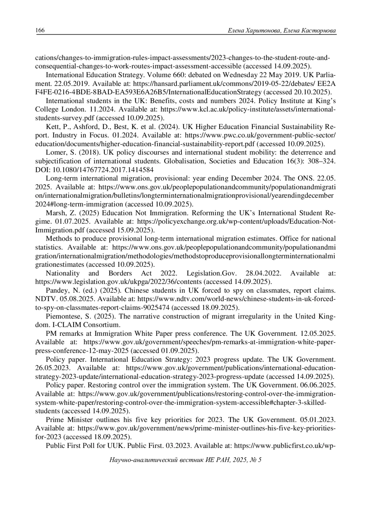 14. Harding, E. (2025). Universities are a “backdoor to migration” and graduate visas must be axed, report warns. Daily Mail. 01.07.2025. Available at: https://www.dailymail.co.uk/news/article-14865845/Universities-door-migration-graduate-visas-axed.html (accessed 17.09.2025).