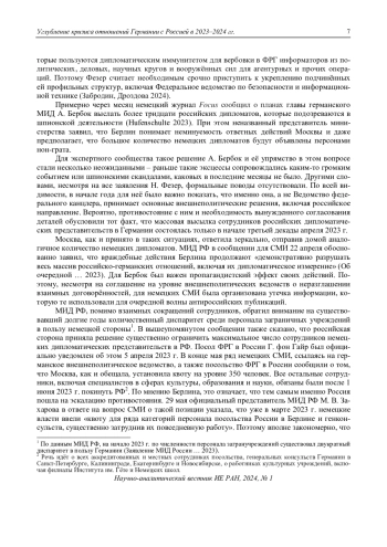 About the next mass expulsion of employees of Russian diplomatic missions in Germany and Russian retaliatory measures. Ministry of Foreign Affairs of the Russian Federation. 22.04.2024. (in Russian). Available at: https://www.mid.ru/ru/foreign_policy/news/1865005/(accessed 15.02.2024).