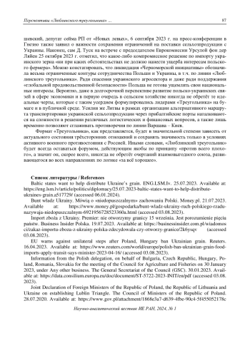9. Neighbourly feuds. The problem with Ukrainian grain on the Central European markets. Centre for Eastern Studies (OSW). 26.10.2023. Available at: https://www.osw.waw.pl/en/publikacje/osw-commentary/2023-10-26/neighbourly-feuds-problem-ukrainian-grain-central-european (accessed 06.01.2024).