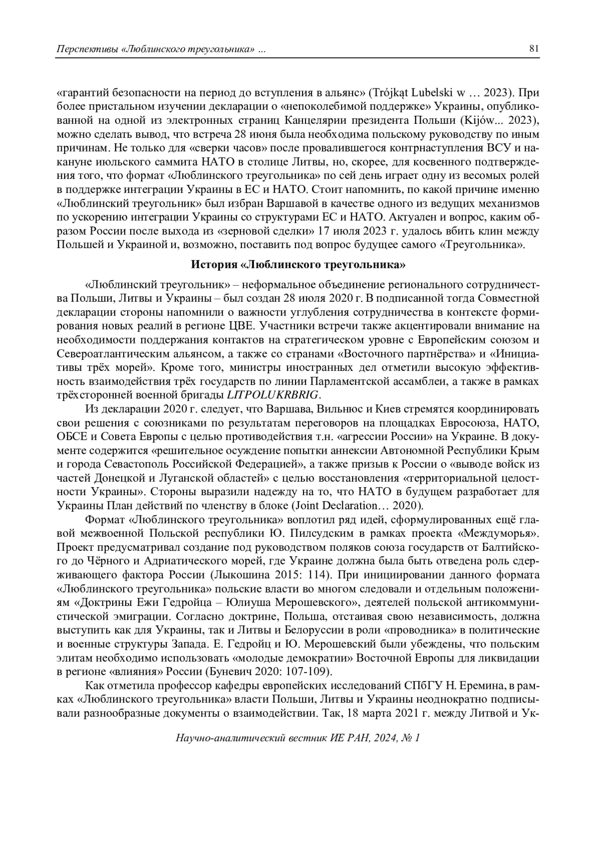 16. Еремина, Н. В. (2021). Люблинский треугольник как свидетельство усиления регионального блокового подхода в Восточной Европе // Евразия. Эксперт (1): 47-53. EDN: LEUITP