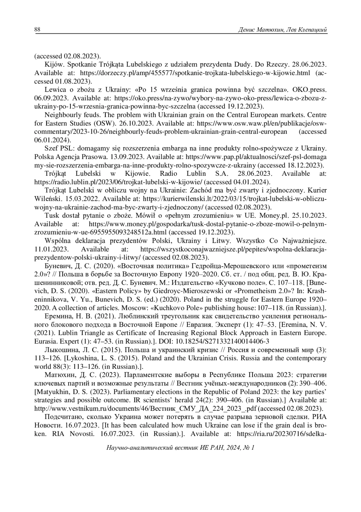 18. Матюхин, Д. С. (2023). Парламентские выборы в Республике Польша 2023: стратегии ключевых партий и возможные результаты // Вестник учёных-международников (2): 390-406.