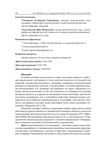 6. Богуславская В.В., Ратникова А.Г. Вербализации тактильной коммуникации в медиатекстах российских СМИ: аксиологические аспекты // Коммуникативные исследования. 2023. Т. 10. № 4. С. 741-753. DOI: 10.24147/2413-6182.2023.10(4).741-753 EDN: OMODHF