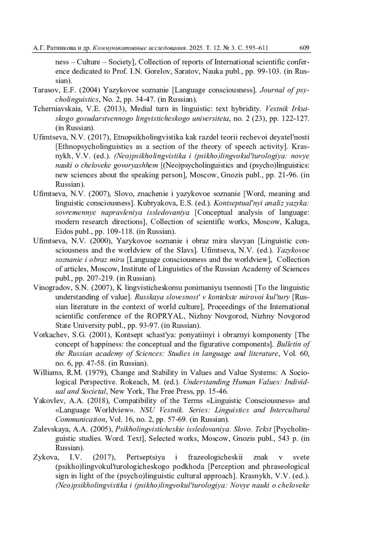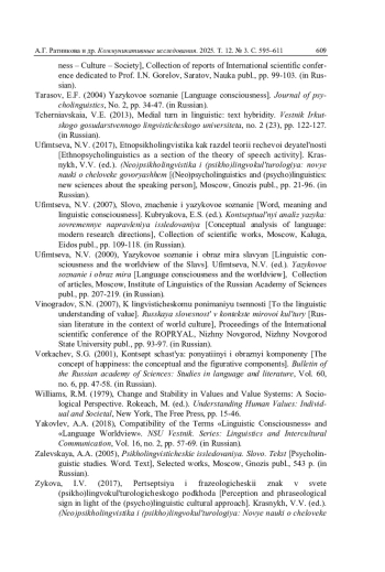 41. Уфимцева Н.В. Слово, значение и языковое сознание // Концептуальный анализ языка: современные направления исследования: сб. науч. тр. / отв. ред. Е.С. Кубрякова. М.; Калуга: Эйдос, 2007. С. 109-118.
