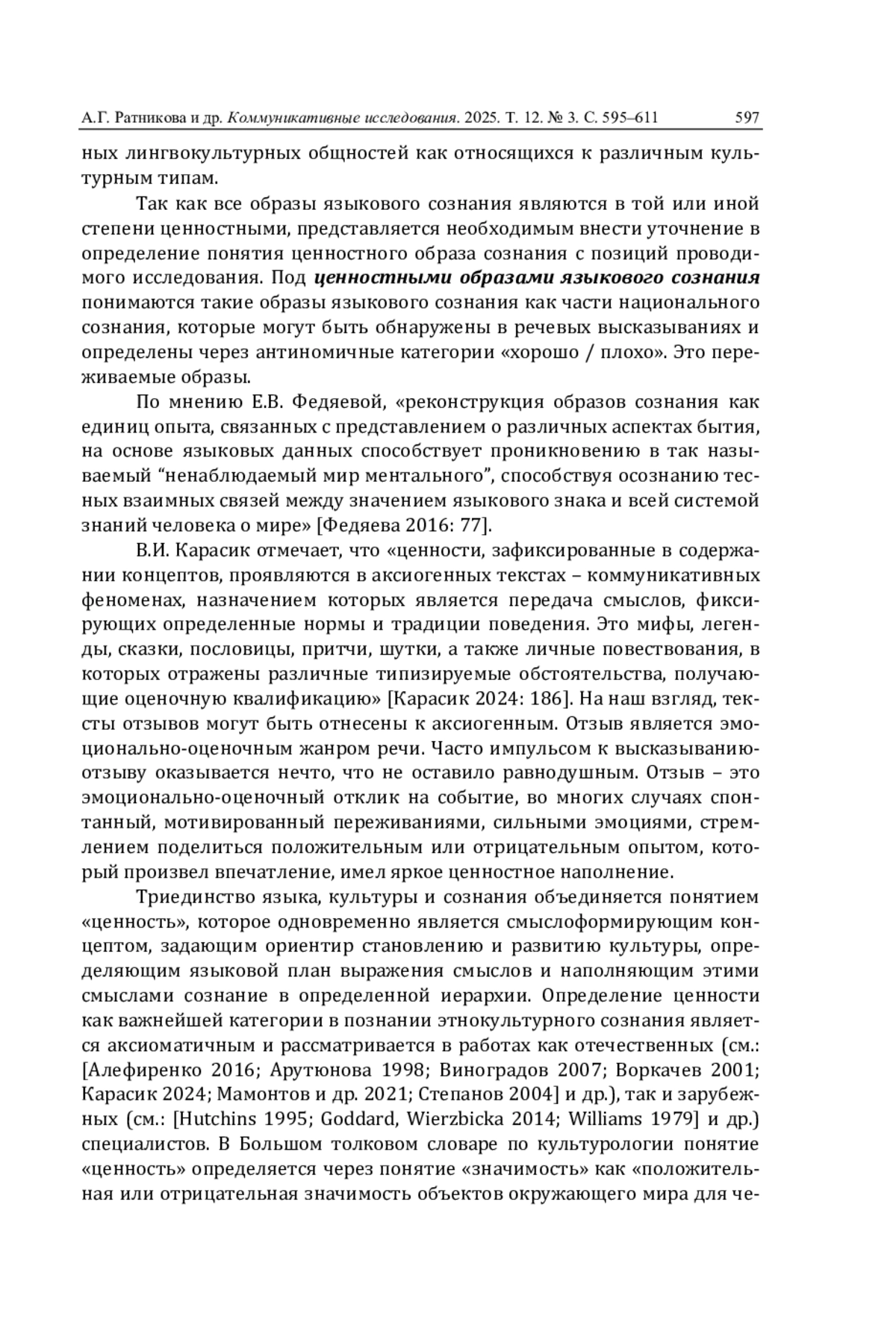 25. Карасик В.И. Ценностная картина мира как объект аксиологической лингвистики // Языки, литературы и культуры народов России в современной академической науке: сб. материалов Междунар. науч.-практ. конф. (9-10 окт. 2024 г., Казань). Казань: ИЯЛИ АН РТ, 2024. С. 183-188. EDN: QOPXEQ