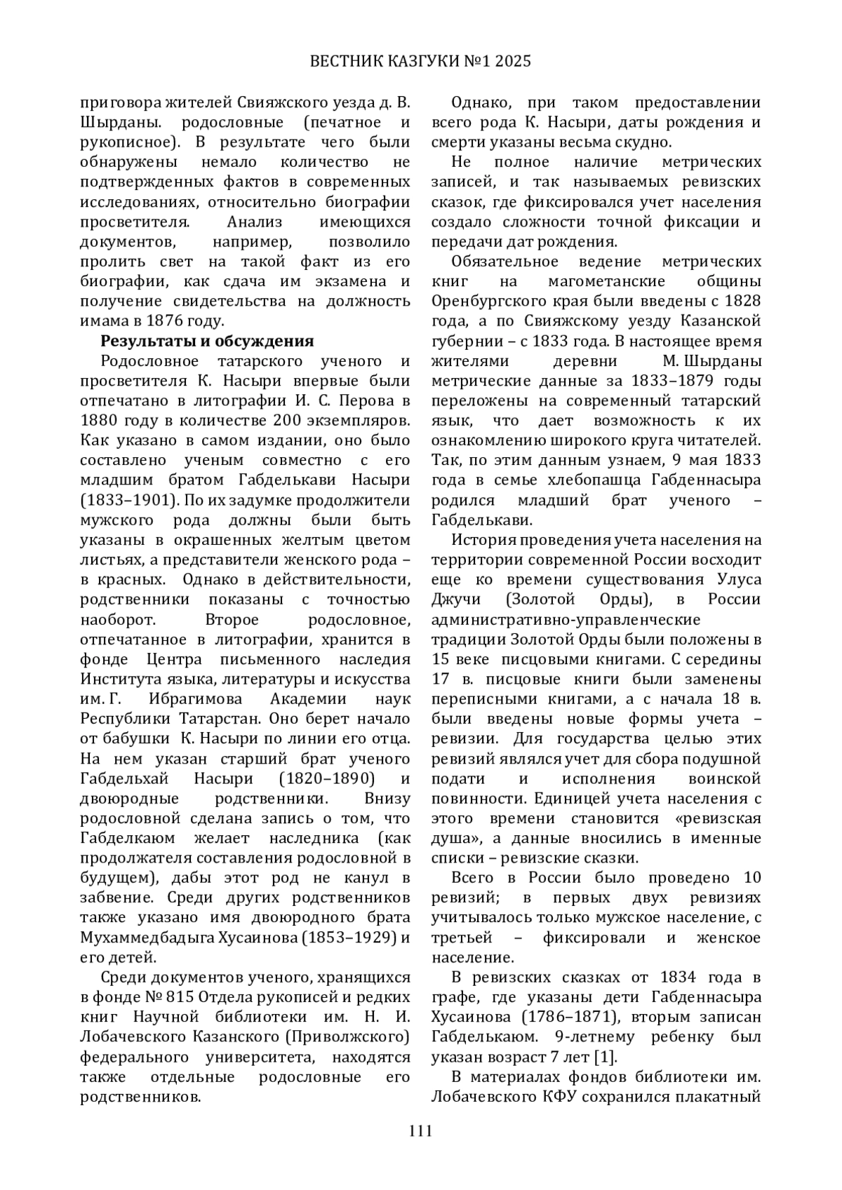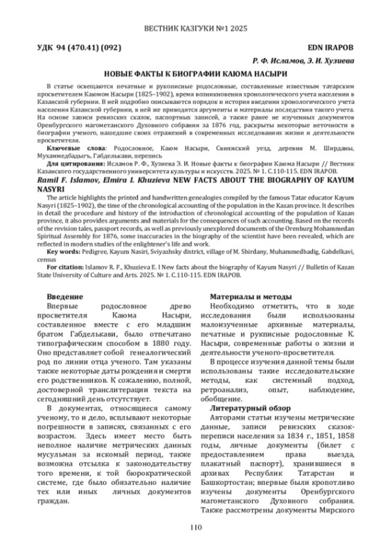 В статье освещаются печатные и рукописные родословные, составленные известным татарским просветителем Каюмом Насыри (1825-1902), время возникновения хронологического учета населения в Казанской губернии. В ней подробно описываются порядок и история введения хронологического учета населения Казанской губернии, в ней же приводятся аргументы и материалы последствия такого учета. На основе записи ревизских сказок, паспортных записей, а также ранее не изученных документов Оренбургского магометанского Духовного собрания за 1876 год, раскрыты некоторые неточности в биографии ученого, нашедшие своих отражений в современных исследованиях жизни и деятельности просветителя.