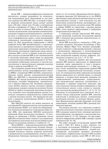 30. Khalil M., Teunissen C.E., Lehmann S., Otto M., Piehl F., Ziemssen T., et al. Neurofilaments as biomarkers in neurological disorders - towards clinical application. Nat. Rev. Neurol. 2024; 20(5): 269-87. DOI: 10.1038/s41582-024-00955-x