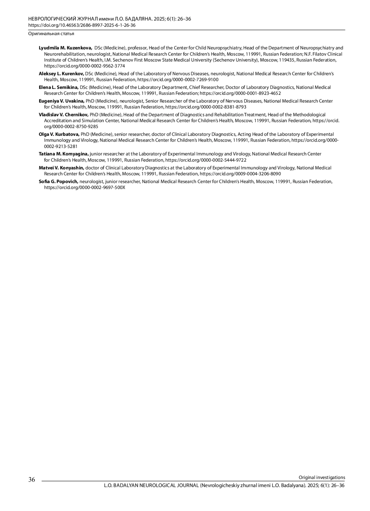 20. Jacobs Sariyar A., van Pesch V., Nassogne M.C., Moniotte S., Momeni M. Usefulness of serum neurofilament light in the assessment of neurologic outcome in the pediatric population: a systematic literature review. Eur. J. Pediatr. 2023; 182(5): 1941-8. DOI: 10.1007/s00431-022-04793-1
