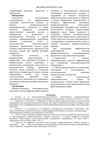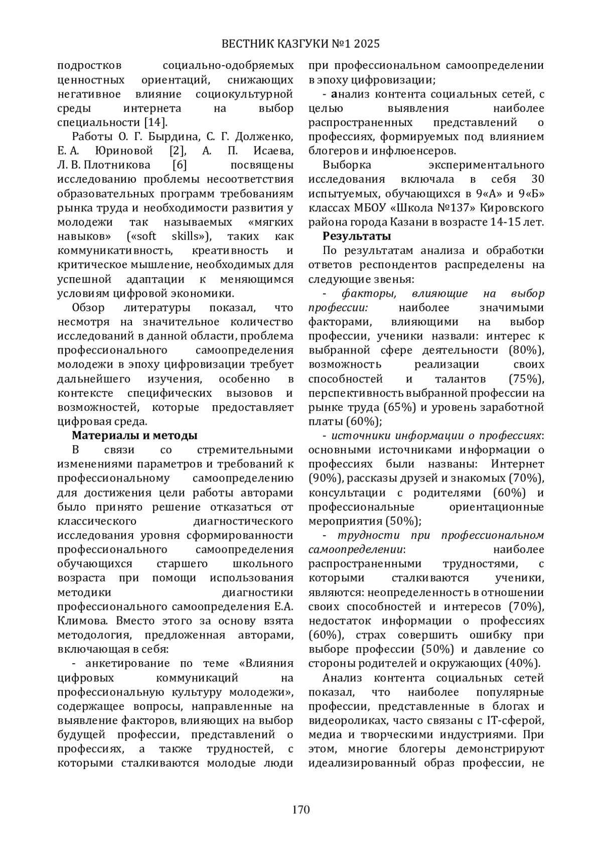В современном обществе, характеризующемся стремительной цифровизацией всех сфер жизни, проблема профессионального самоопределения молодежи приобретает особую актуальность [8, 9].