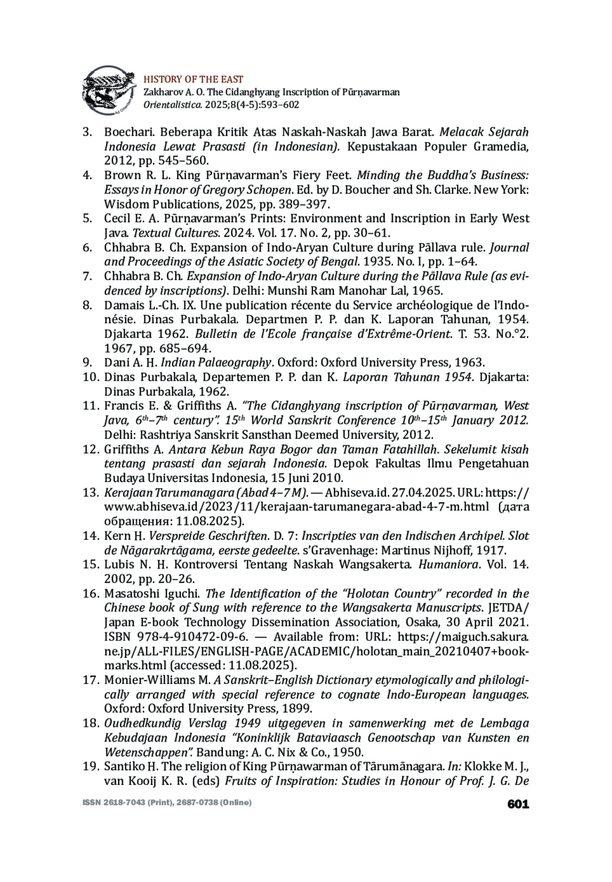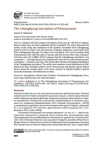 5. Cecil, Elizabeth A. Pūrṇavarman’s Prints: Environment and Inscription in Early West Java. Textual Cultures. Vol. 17. 2024. No. 2. Pp/ 30-61. DOI: 10.14434/TC.V17I2.40318