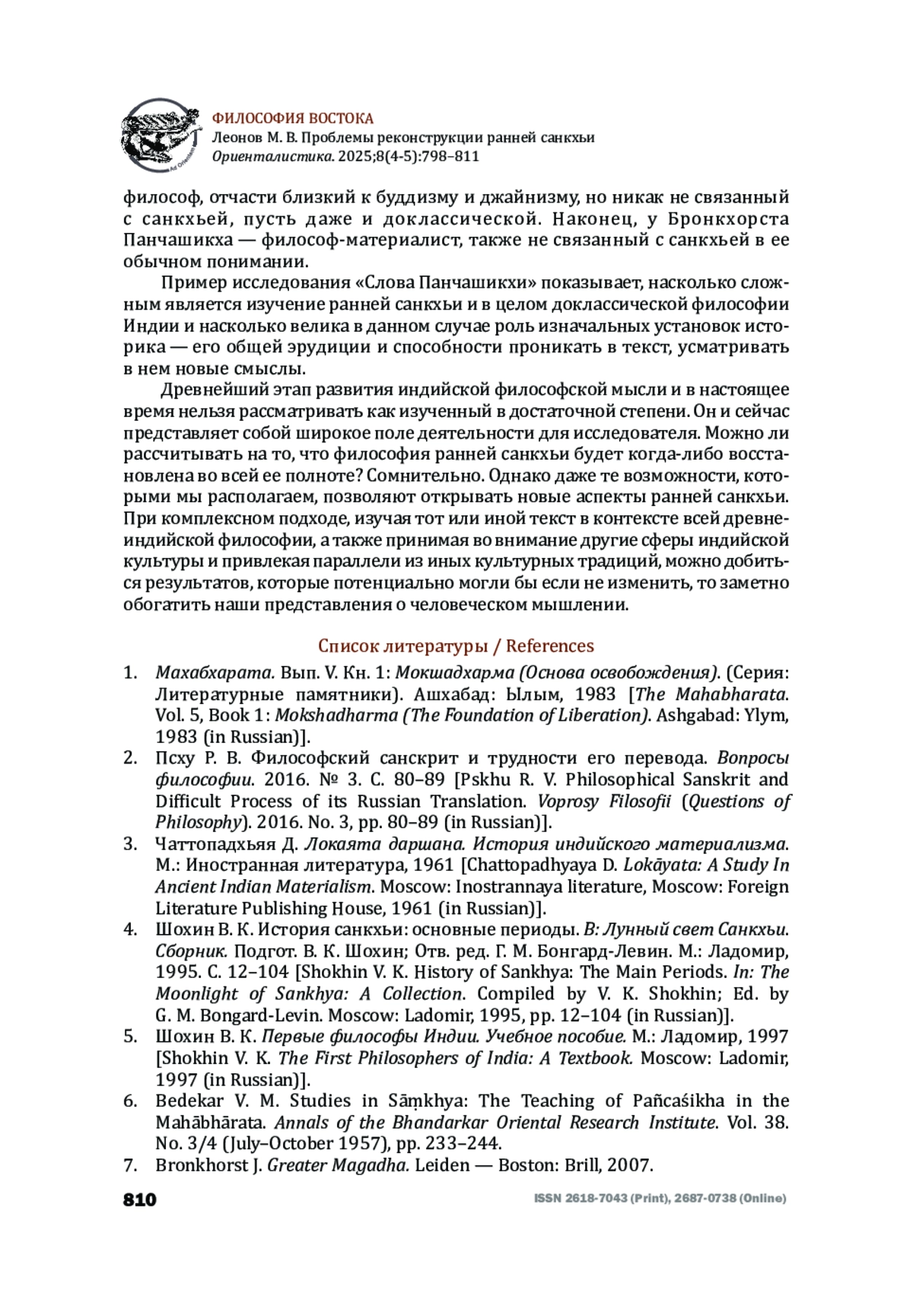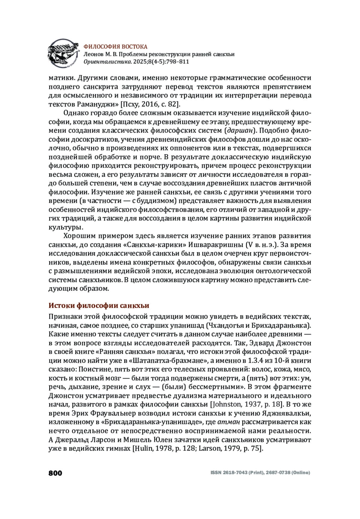 9. Frauwalner, E. History of Indian Philosophy, vol. I. Delhi, 1973.