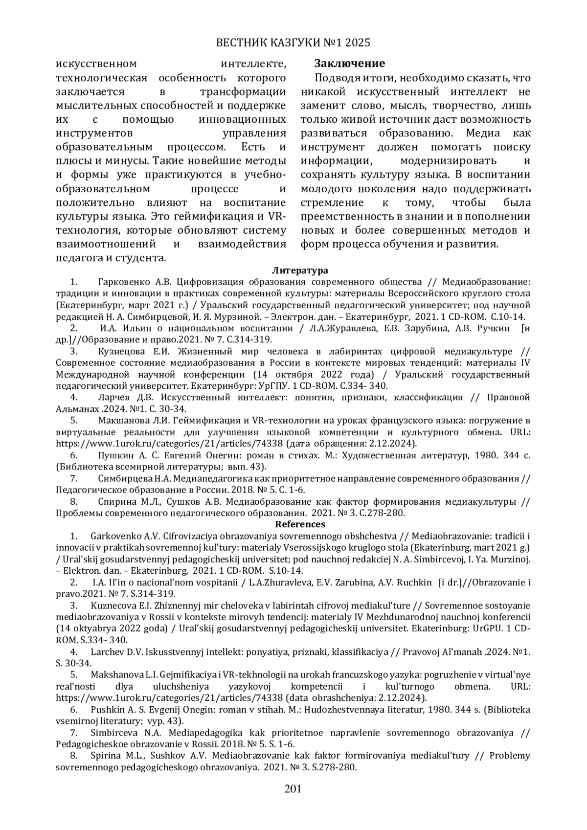 1. Гарковенко А.В. Цифровизация образования современного общества // Медиаобразование: традиции и инновации в практиках современной культуры: материалы Всероссийского круглого стола (Екатеринбург, март 2021 г.) / Уральский государственный педагогический университет; под научной редакцией Н. А. Симбирцевой, И. Я. Мурзиной. - Электрон. дан. - Екатеринбург, 2021. 1 CD-ROM. С.10-14. EDN: XFKFXY