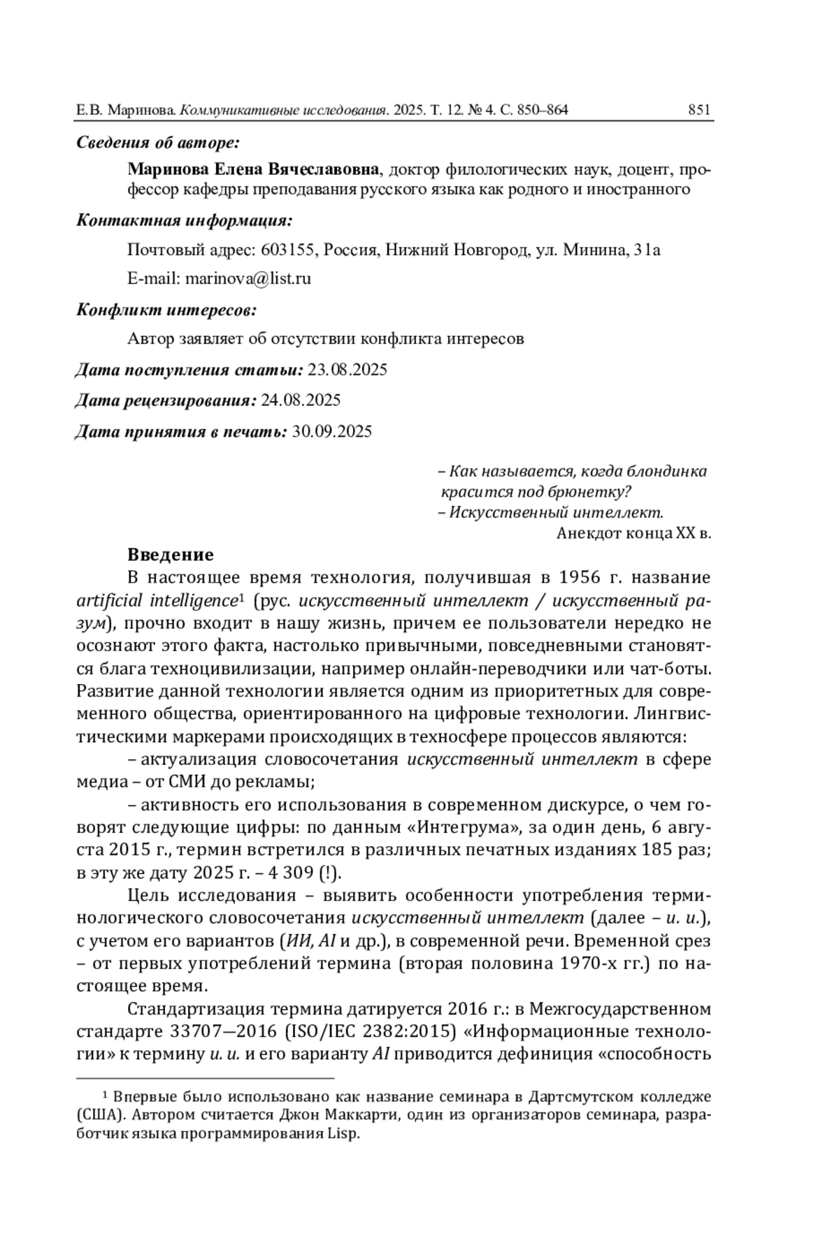 5. Клементьева А.А. К вопросу о функционировании термина искусственный интеллект в современном научном и публицистическом дискурсе // Мир русского слова. 2022. № 4. С. 14-23. EDN: RJGJJU