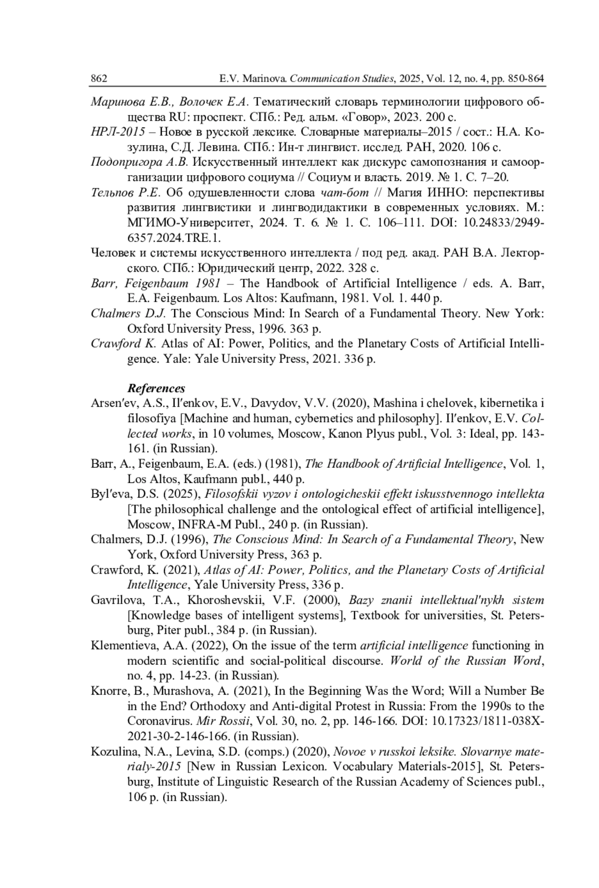 11. Маринова Е.В., Волочек Е.А. Тематический словарь терминологии цифрового общества RU: проспект. СПб.: Ред. альм. “Говор”, 2023. 200 с.