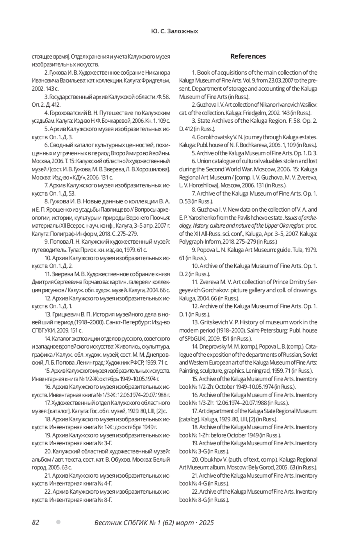 11. Зверева М. В. Художественное собрание князя Дмитрия Сергеевича Горчакова: картин. галерея и коллекция рисунков / Калуж. обл. худож. музей. Калуга, 2004. 66 с. EDN: PFVIKO