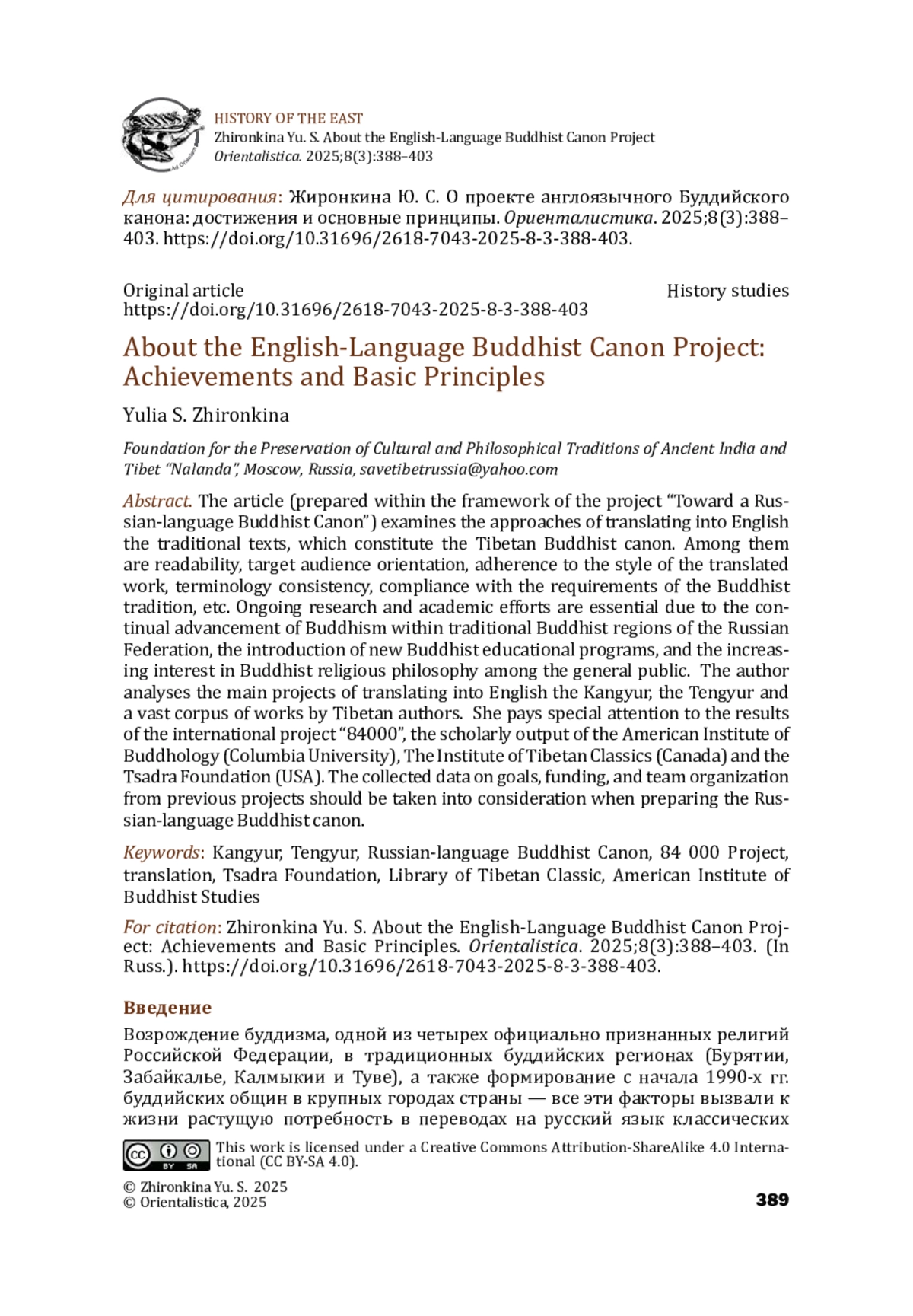 Возрождение буддизма, одной из четырех официально признанных религий Российской Федерации, в традиционных буддийских регионах (Бурятии, Забайкалье, Калмыкии и Туве), а также формирование с начала 1990-х гг. буддийских общин в крупных городах страны — все эти факторы вызвали к жизни растущую потребность в переводах на русский язык классических сочинений буддизма и, в первую очередь, тибетского буддийского канона — Кангьюра (тиб. bka’ ’gyur), Слова Будды, и Тэнгьюра (тиб. bstan ’gyur), комментариев к Слову Будды индийских философов, а также обширного свода более поздних произведений тибетских авторов.