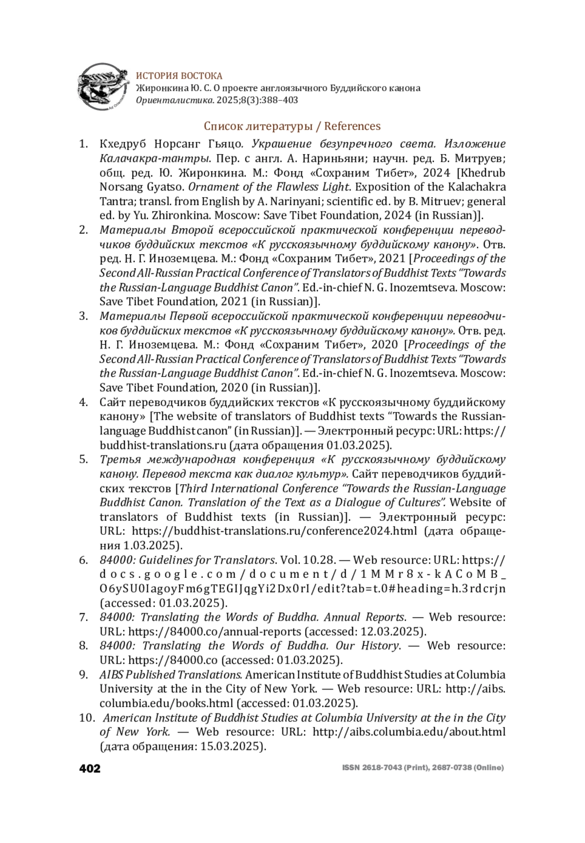8. 4000: Translating the Words of Buddha. Our History. - Web resource: URL: https://84000.co (accessed: 01.03.2025).