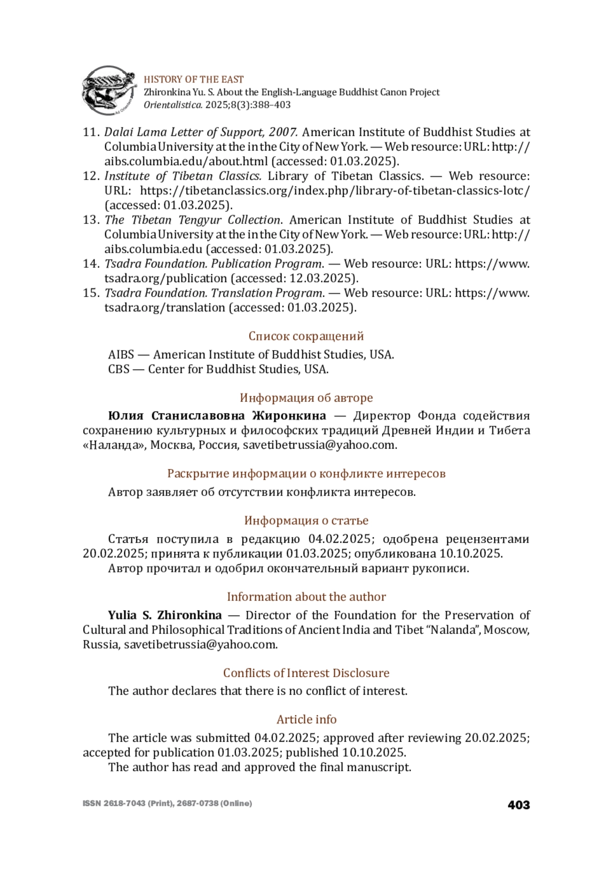 10. American Institute of Buddhist Studies at Columbia University at the in the City of New York. - Web resource: URL: http://aibs.columbia.edu/about.html (дата обращения: 15.03.2025).