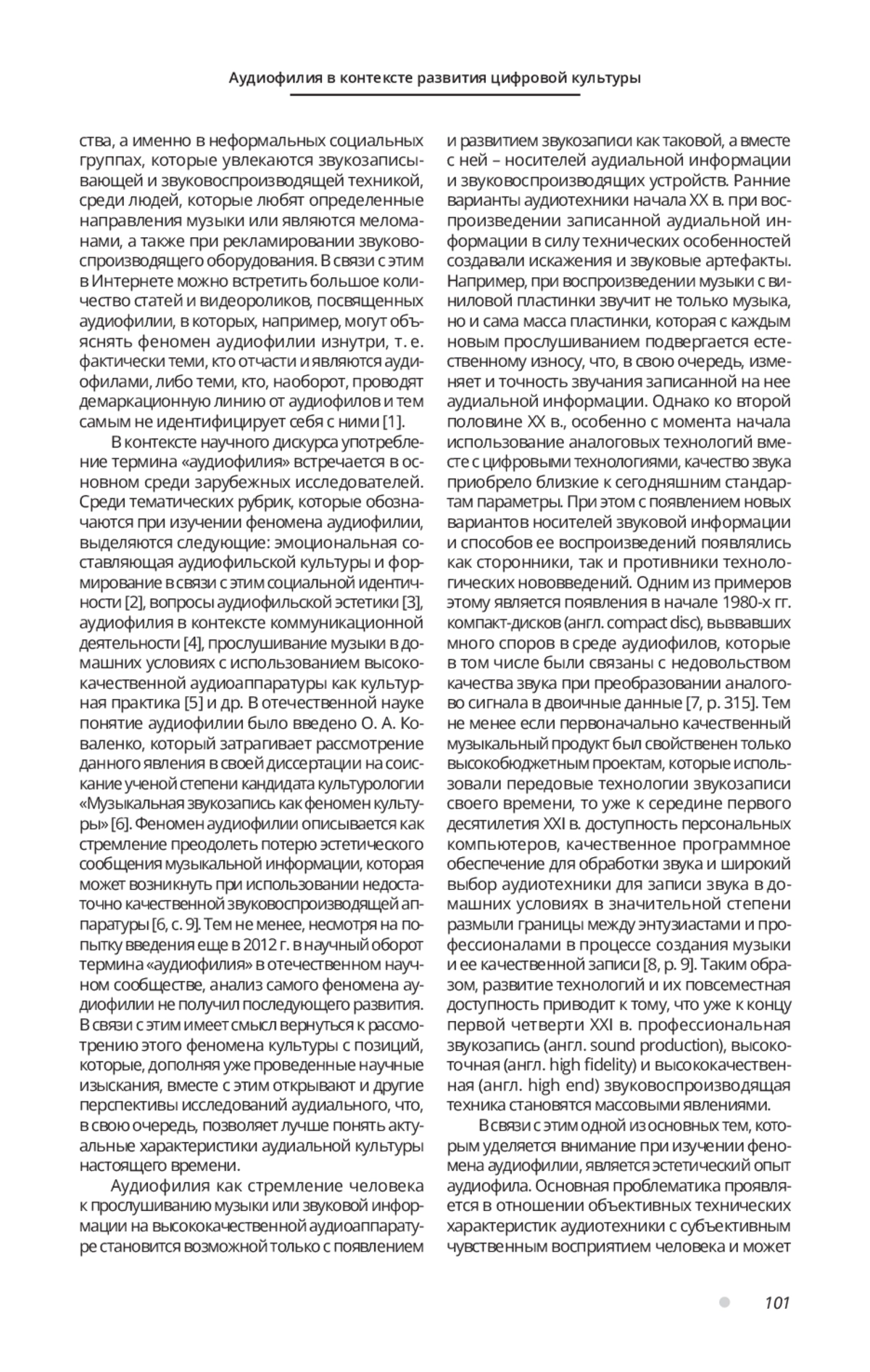 6. Коваленко О. А. Музыкальная звукозапись как феномен культуры: дис.... канд. культурологии: 24.00.01. Санкт-Петербург, 2012. 228 с. EDN: QGBJFR