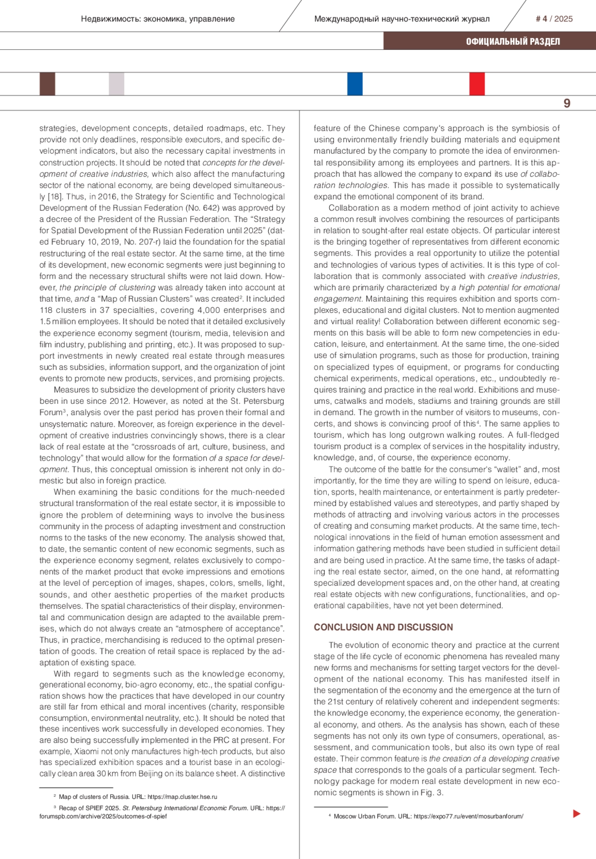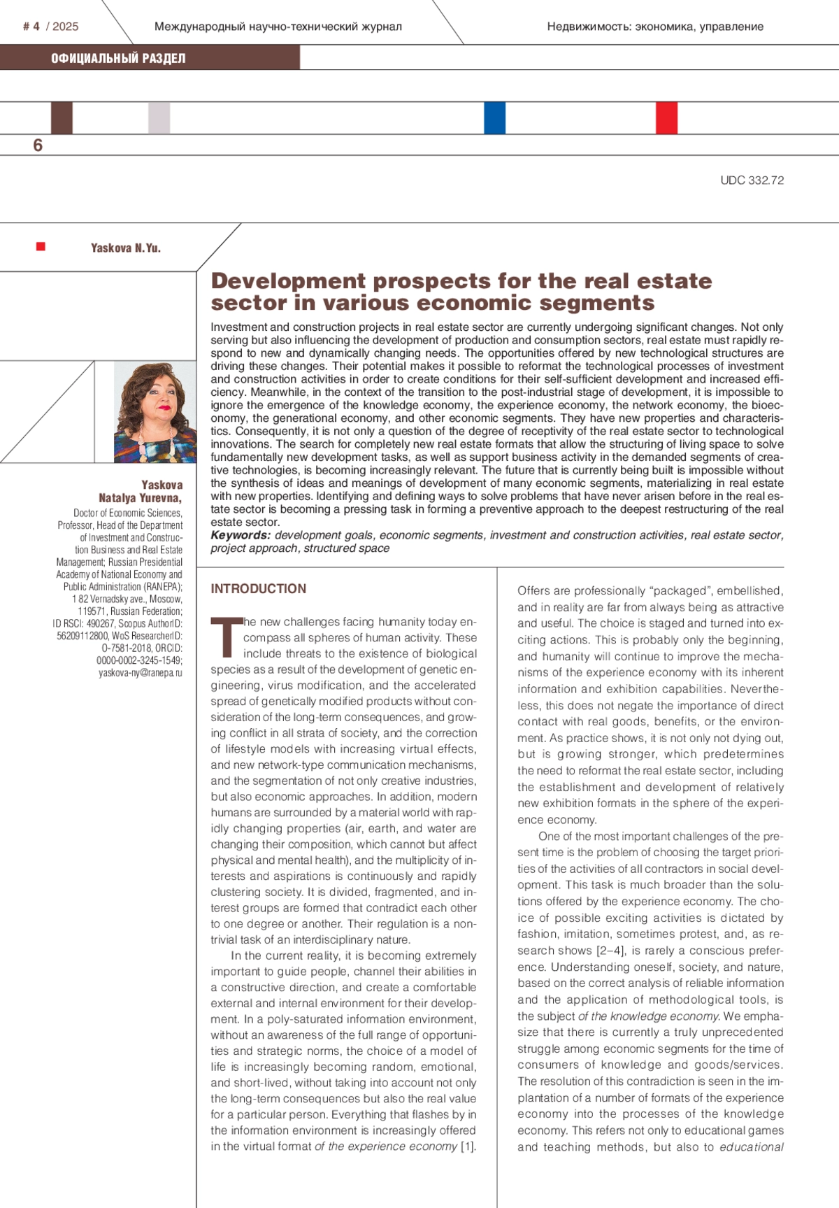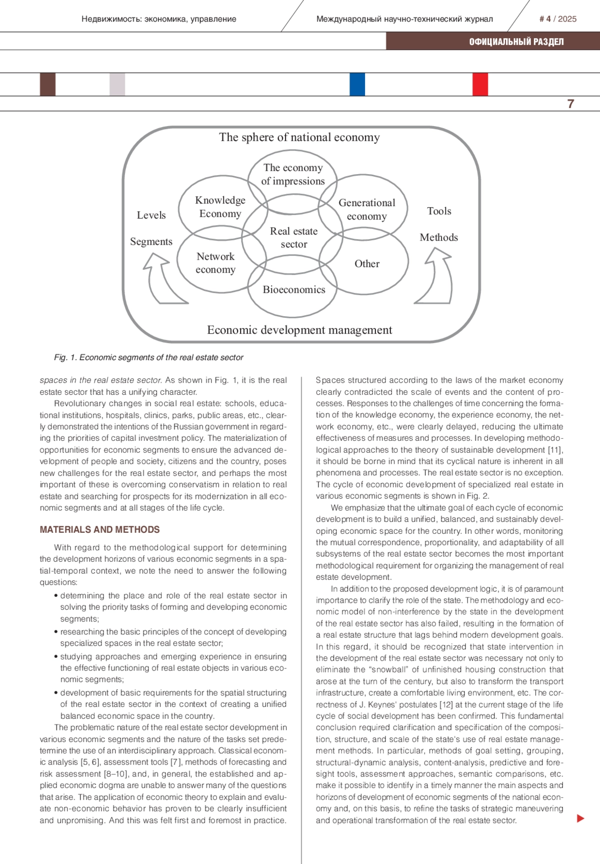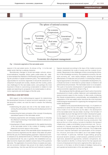 Investment and construction projects in real estate sector are currently undergoing significant changes. Not only serving but also influencing the development of production and consumption sectors, real estate must rapidly respond to new and dynamically changing needs. The opportunities offered by new technological structures are driving these changes. Their potential makes it possible to reformat the technological processes of investment and construction activities in order to create conditions for their self-sufficient development and increased efficiency. Meanwhile, in the context of the transition to the post-industrial stage of development, it is impossible to ignore the emergence of the knowledge economy, the experience economy, the network economy, the bioeconomy, the generational economy, and other economic segments. They have new properties and characteristics. Consequently, it is not only a question of the degree of receptivity of the real estate sector to technological innovations. The search for completely new real estate formats that allow the structuring of living space to solve fundamentally new development tasks, as well as support business activity in the demanded segments of creative technologies, is becoming increasingly relevant. The future that is currently being built is impossible without the synthesis of ideas and meanings of development of many economic segments, materializing in real estate with new properties. Identifying and defining ways to solve problems that have never arisen before in the real estate sector is becoming a pressing task in forming a preventive approach to the deepest restructuring of the real estate sector.