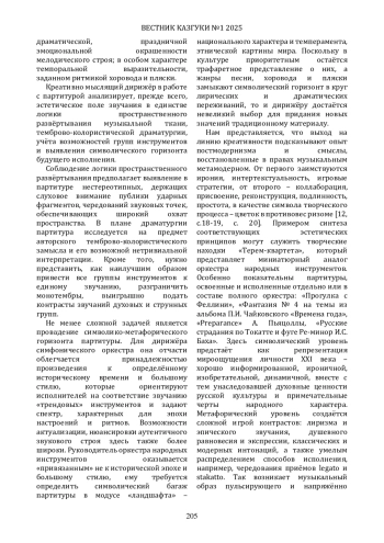 В статье исследуется одно из необходимых направлений подготовки будущих дирижёров оркестра народных инструментов в области анализа партитуры. Автор, исходя из методологии Ю. Б. Абдокова, обращает внимание на формирование важного аспекта креативности у студентов. Он состоит в способности находить и озвучивать эстетические основания, метафизические и символические смыслы, заключенные в нотном тексте. Высказывается идея выявления новых интонаций, созвучных национальному менталитету, на базе художественного опыта постмодернизма и метамодерна.