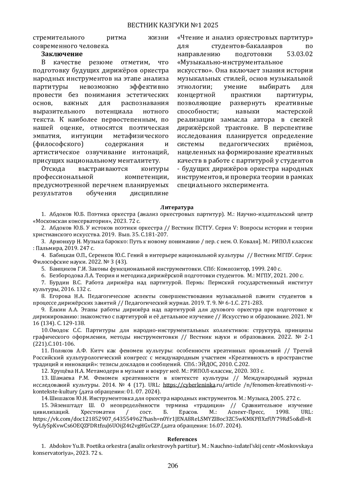 2. Абдоков Ю.Б. У истоков поэтики оркестра // Вестник ПСТГУ. Серия V: Вопросы истории и теории христианского искусства. 2019. Вып. 35. С.181-207. EDN: WMMIWD