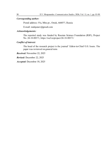 8. Иссерс О.С. Коммуникативная категория такта и ее репрезентация в профессиональных сферах общения // Журнал Сибирского федерального университета. Гуманитарные науки. 2025а. № 18 (10). C. 2022-2034. EDN: TDXVUP