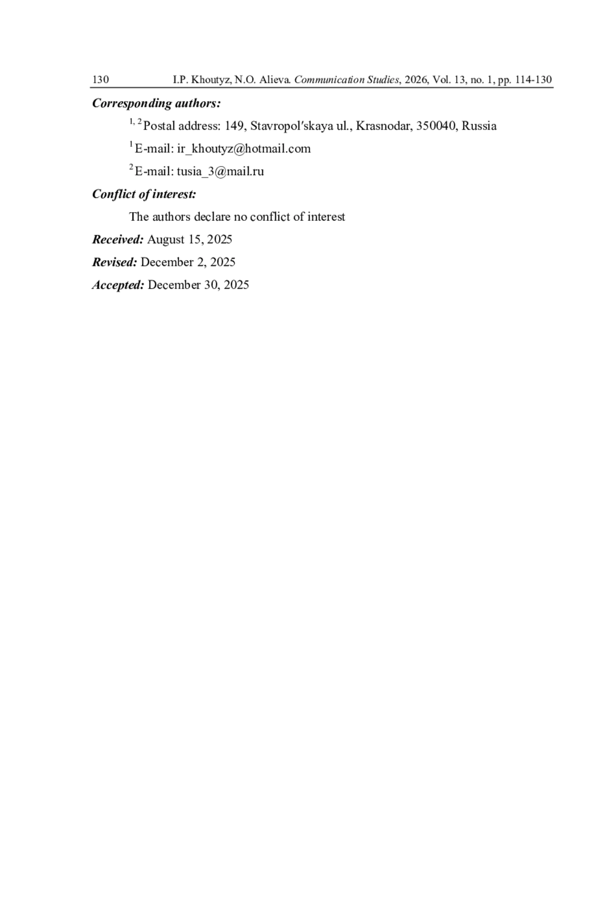 7. Журавель О.Д., Шишкина Н.Е. Жанры и форматы новых медиа: к вопросу о границах нового феномена в медиадискурсе // Актуальные вопросы современной филологии и журналистики. 2022. № 4. С. 109-116.