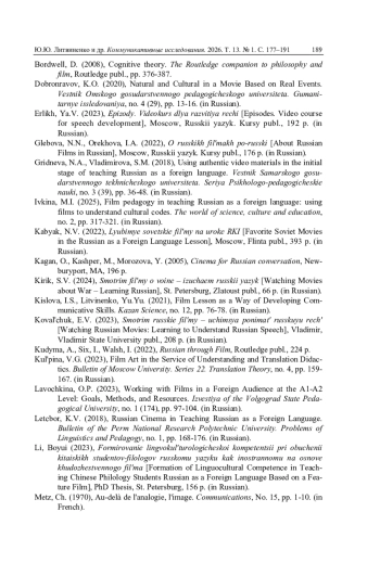 15. Лавочкина О.П. Работа с фильмами в иностранной аудитории на уровне А1-А2: цели, способы, ресурсы // Известия Волгоградского государственного педагогического университета. 2023. № 1 (174). С. 97-104. EDN: JWBXEI